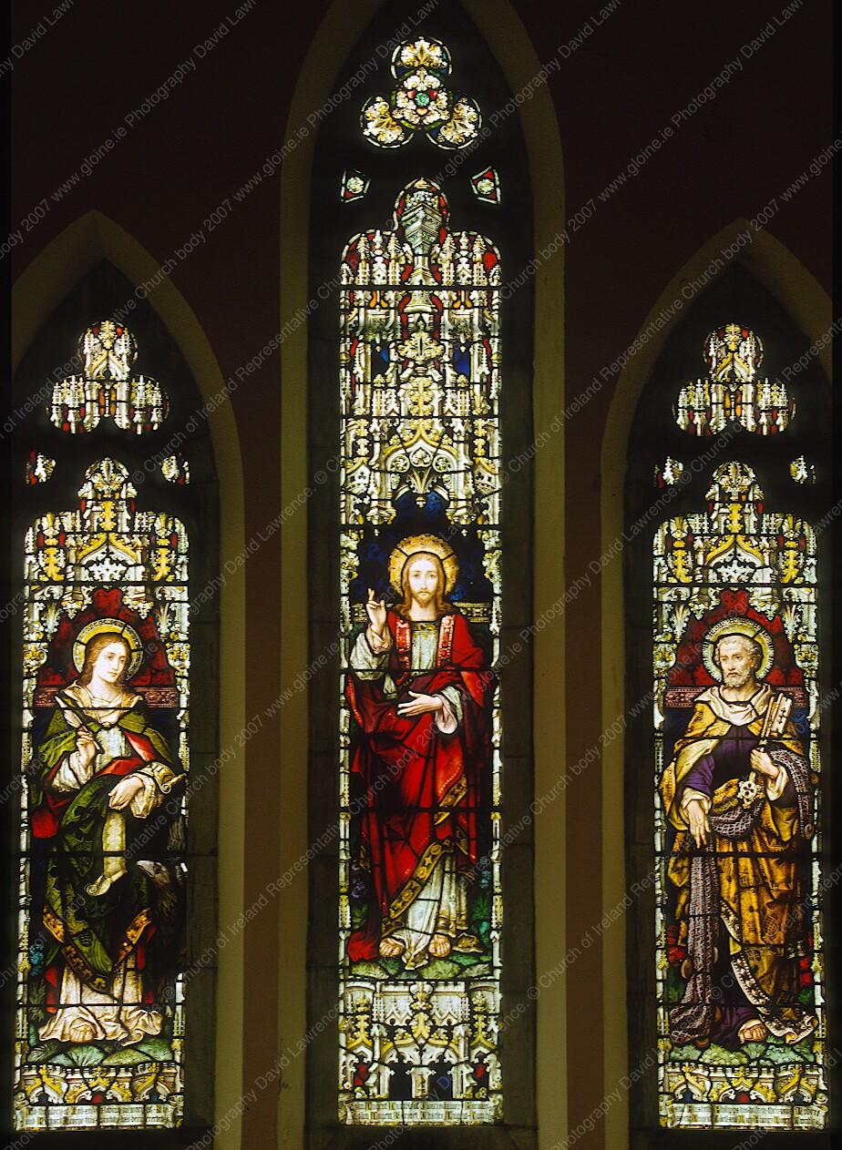 Three lancets, 2460mm x 610mm; 3560mm x 610mm; 2460mm x 610mm; each lancet has one trefoil and two small tracery-lights.