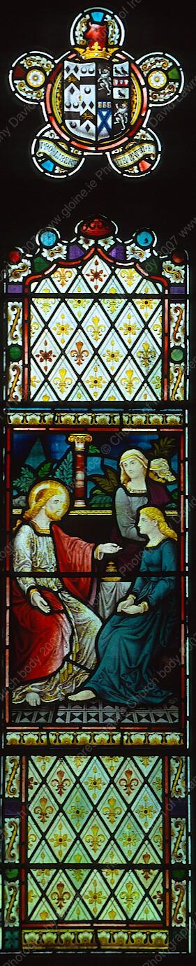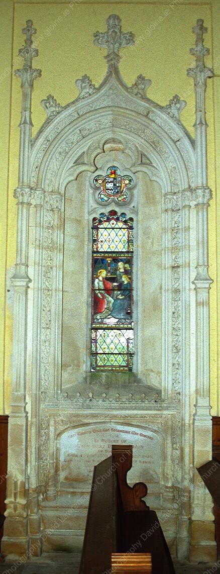 Window is signed "Winfield Limtd., Birmingham, Successors to Camm Bros." Elaborately carved window opening is by Messrs. Harrison, Gt. Brunswick Street (London). Reported in Irish Builder, vol 34, p211, 1892.